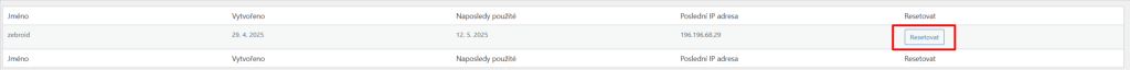 - Odstraňte všechna podezřelá hesla aplikací kliknutím na tlačítko “Reset” (Zrušit) vedle každého z nich
