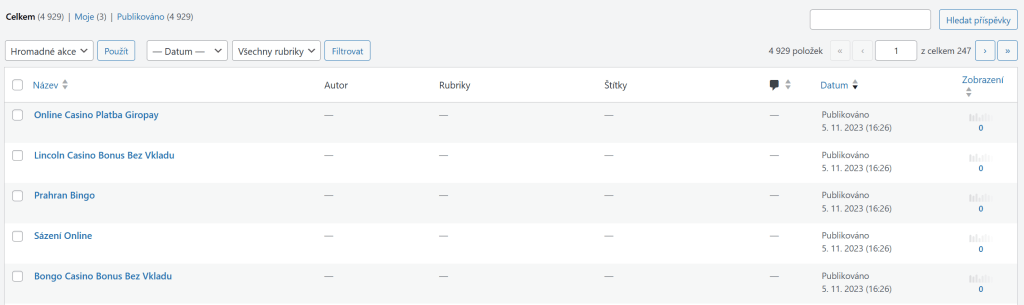 - Články o hazardních hrách jsou viditelné veřejně, ale nejsou vidět v administraci